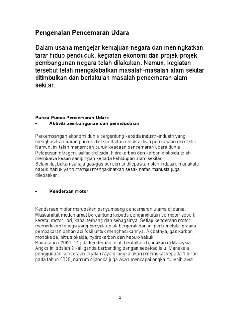 Faktor Atau Punca Isu Pencemaran Udara Tugasan Geografi Pt3 2014 Pdf